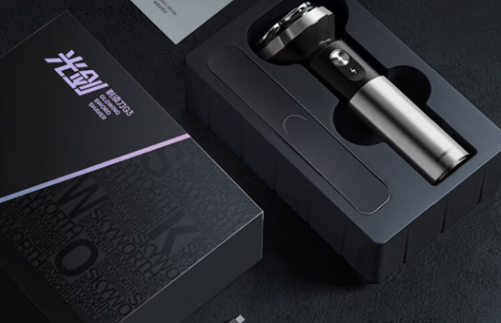 其三,包装设计:礼盒式的包装很精致,盒子质感不错,打开里面配件摆放得整整齐齐,剃须刀、充电线、清洁刷都有,不管是自己用还是送给家人朋友,都显得很有档次。